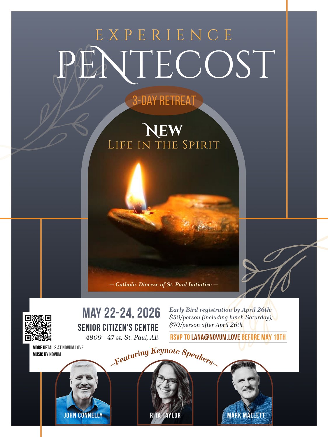 So, for the coming 2026 Pentecost Feast, Novum music ministry and team are excited to host: “Experience Pentecost — New Life in the Spirit”, a 3-day retreat. To register, see details below. Those eligible must be 13 years or older (all teenagers under 18 must be accompanied by an adult).